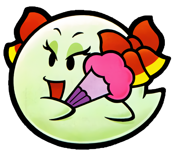 Bow is the leader of the Boos of Boo's Mansion in Paper Mario and is aided by her butler, Bootler. She is very strong-headed and a bit snooty due to her princess-like status in life but is also kind-hearted in wanting to aid Mario so he can save Princess Peach and the world's wishes. However, the main reason that she joins him at first is that she needs him to help stop the ghost-eating boss Tubba Blubba, and offers him the Star Spirit, Skolar, that the Boos caught after his escape from Tubba Blubba's Castle in exchange for his help.