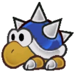 Sky-Blue Spinies are enemies in Paper Mario: The Thousand-Year Door. They are only found in Pit of 100 Trials (Rogueport) and are summoned by Dark Lakitus. There's not much of a difference between them and a normal Spiny, thrown by regular Lakitus. Only the fact that Sky-Blue Spinies are much stronger. Like a Spiny they can curl into a ball, making themselves protected from attacks for one turn. To jump on them you need the Spike Shield Badge or you will take 1 damage.