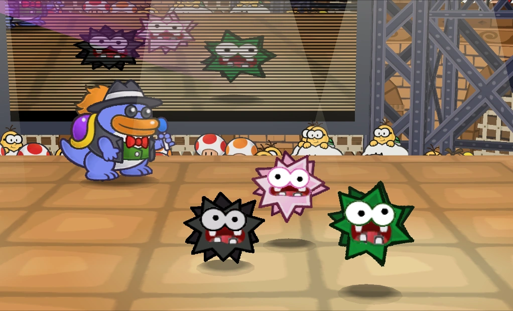 The Fuzz is a team of Fuzzies in the Glitz Pit. The team consists of a regular fuzzy, a flower fuzzy, and a green fuzzy. The team is particularly easy to defeat as long as the green fuzzy is taken out first.